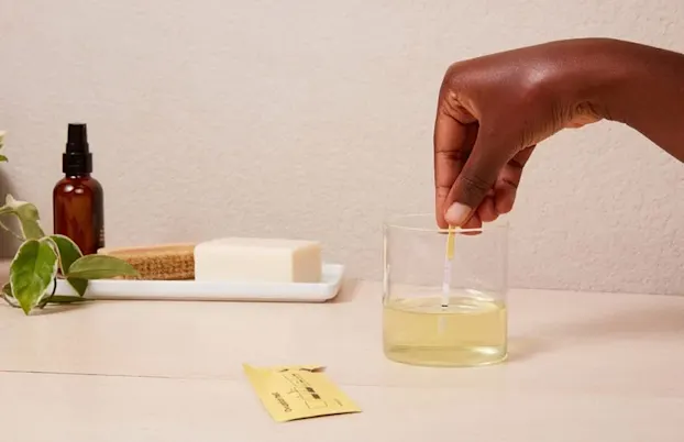 Pee in a cup. We recommend testing in the afternoon.